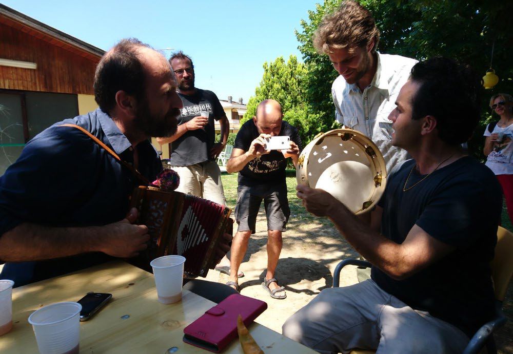Massimiliano and a local performer playing typical music. Source: Alberi di Maggio.