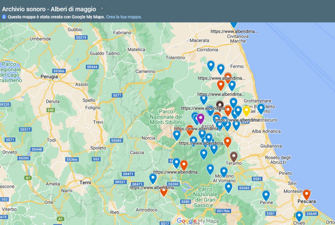 Alberi di Maggio is a cultural association aimed at ethnomusicology research about oral traditions in the inland border areas between the Marche, Abruzzo, and Lazio (Italy), where these regions intersect and share cultural commonalities. The association focuses on traditional construction techniques and dances, and promotes local performance festivals. They also created a community festival for local people’s engagement. Massimiliano, one of the founders, is a teacher of the conservatory of Pescara, and he involves his students in field research methodologies on the territories explored by the association. The association has a web platform with a database of oral performances, local music, dances and festivals, communicated through different types of storytelling: videos and recording of local players shown in an interactive map.